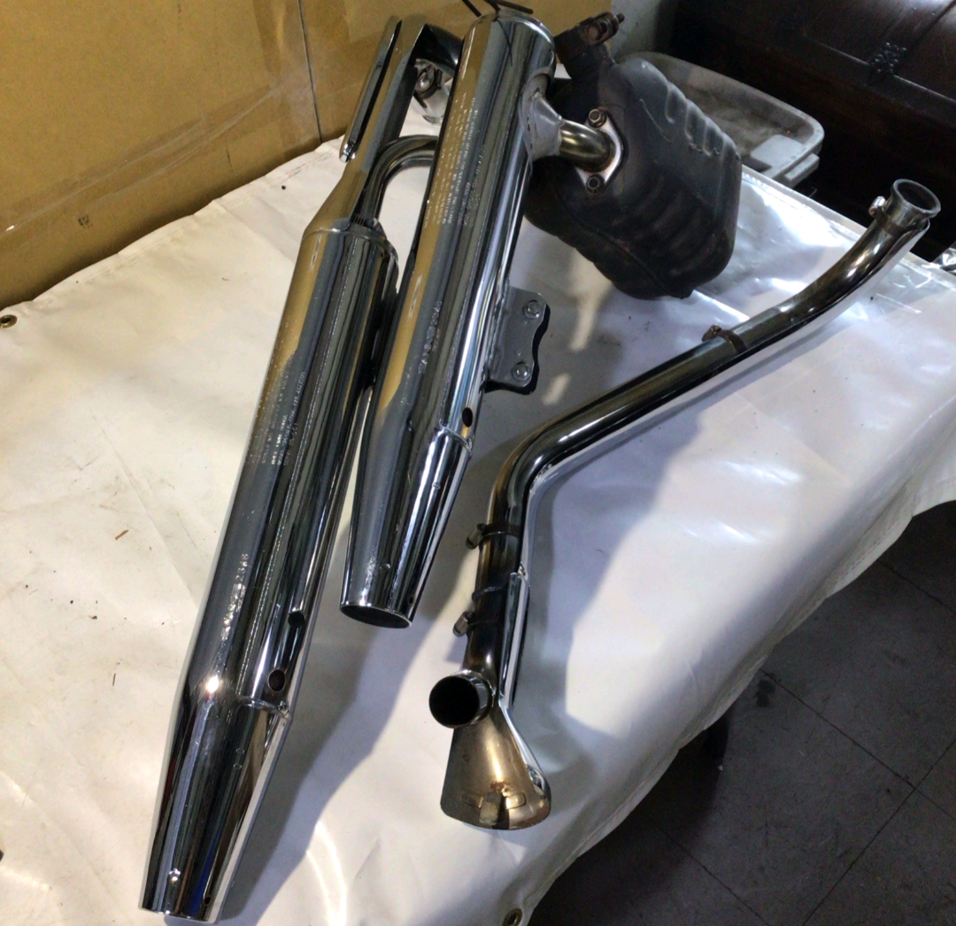 This complete exhaust (manifolds + full piping + mufflers on both sides) is a sought-after OEM part for restoration projects, as aftermarket options (like Vance & Hines, Cobra, or Freedom Performance) often replace it for louder sound, lighter weight, and slight performance gains. The stock setup prioritizes durability, reliable sealing, and a balanced appearance on the classic cruiser frame.
