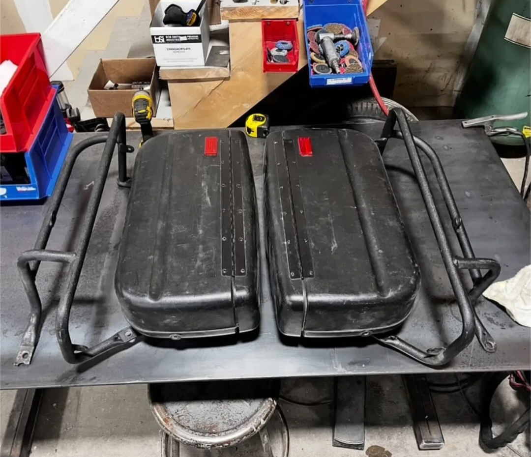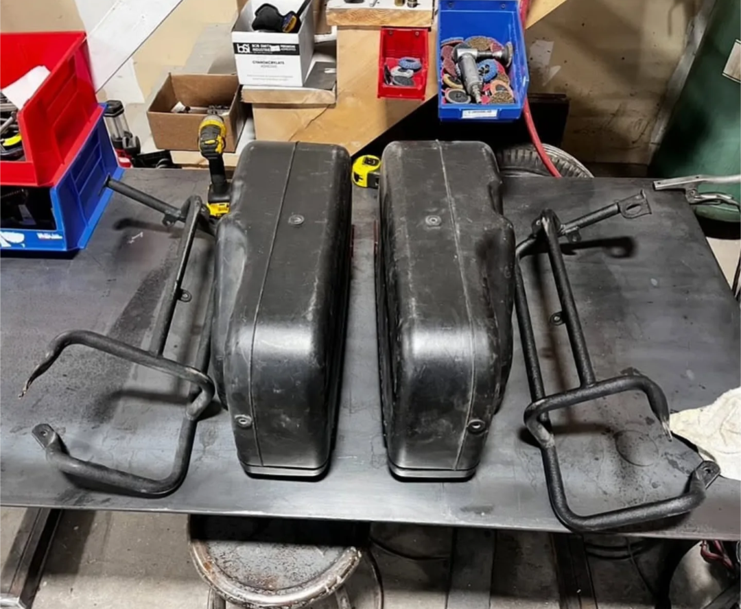 Harley Dyna Defender Saddlebags with Rails – Good Condition, Minor Mod